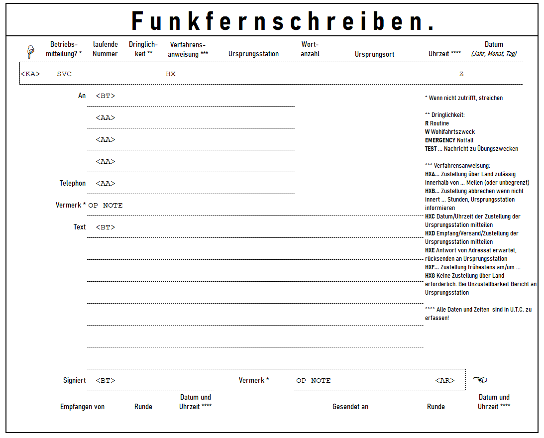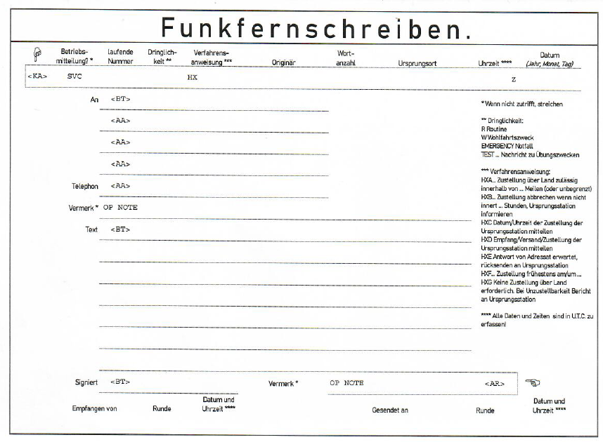 Bild eines Radiogrammformulars